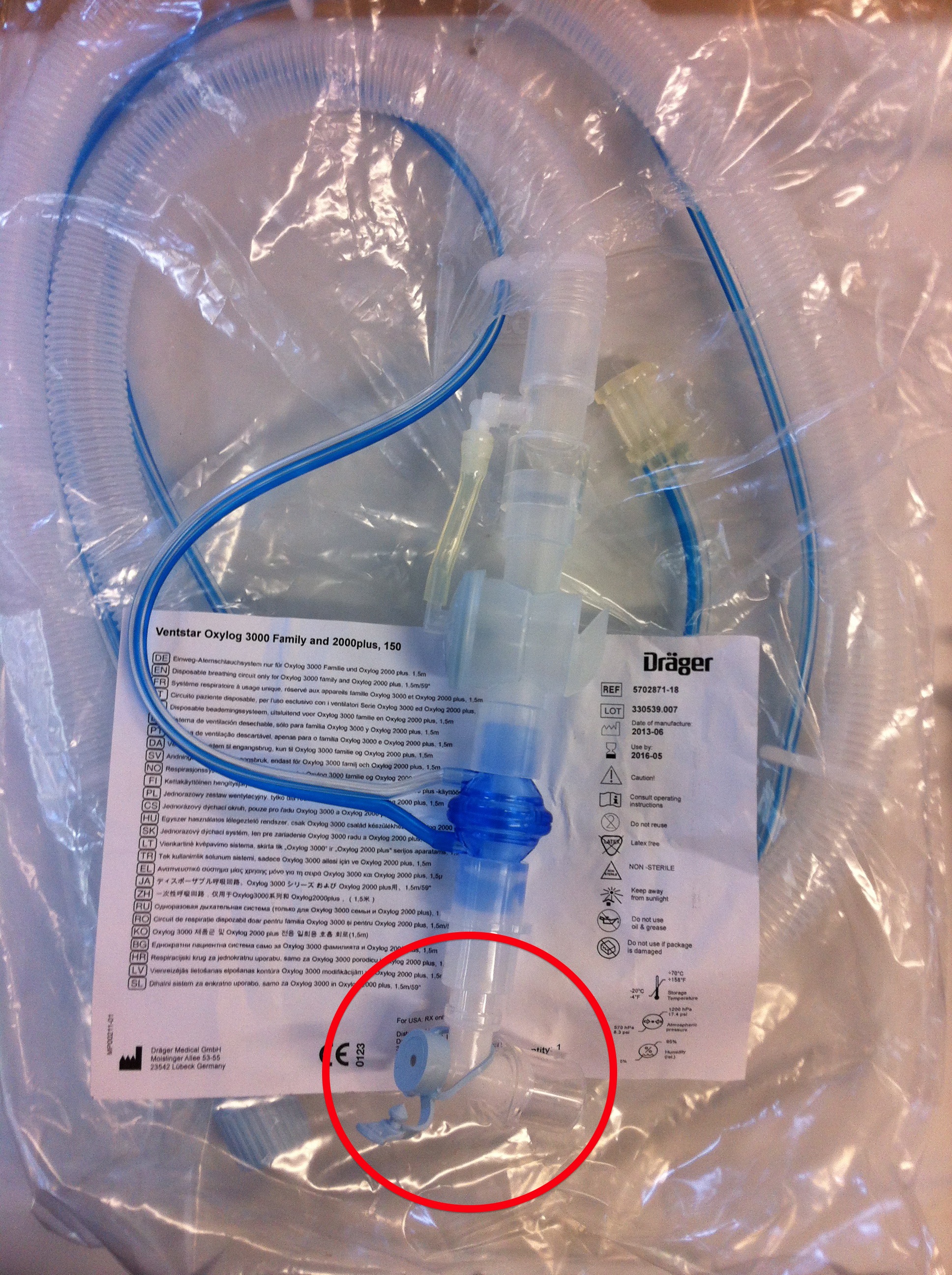 - Patient connector with suction port from an Adult Oxylog 3000 disposable circuit