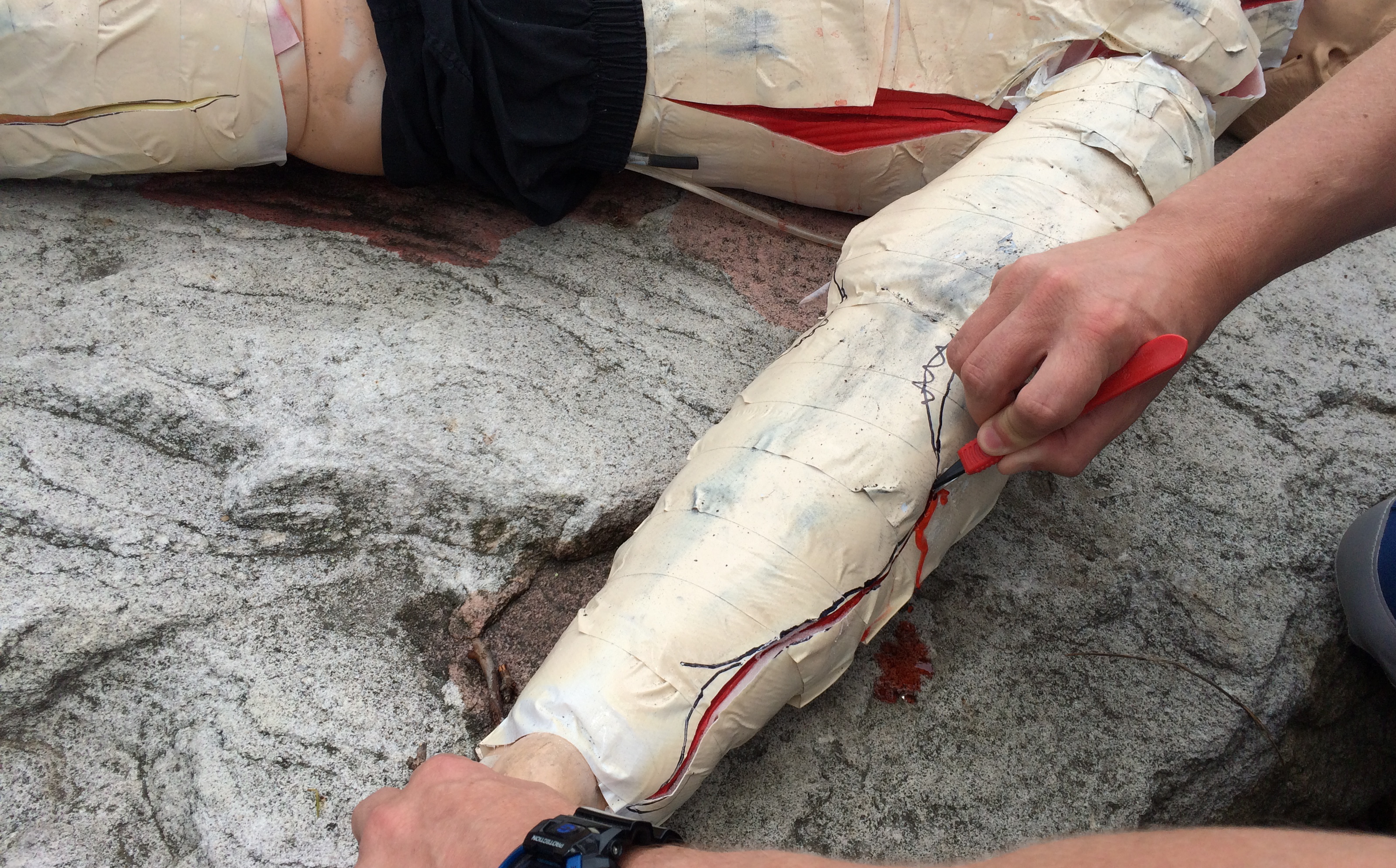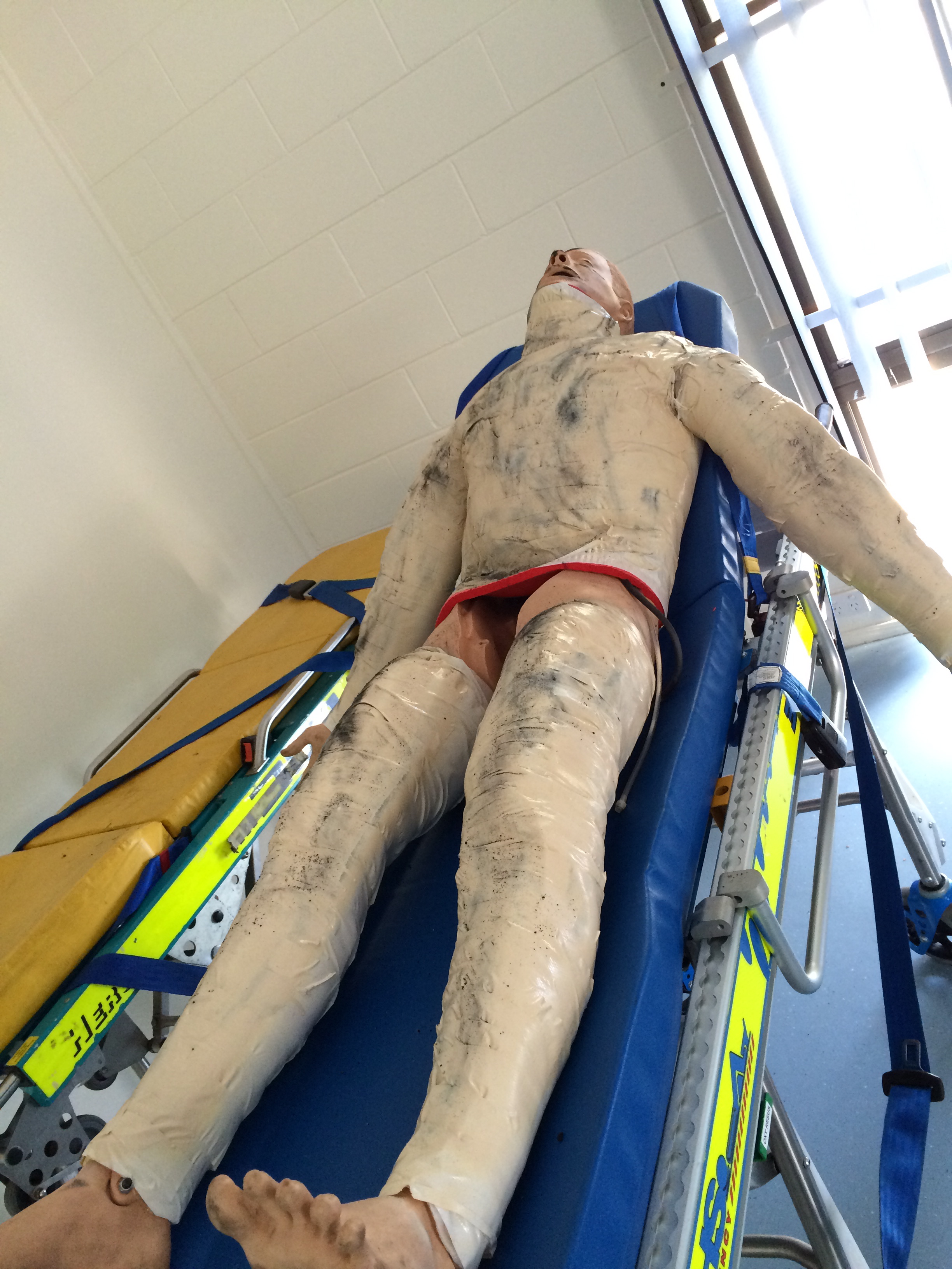 During our first Burns simulation scenario (brilliantly authored and run by Dr Morgan Sherwood) the model was put through its paces. The bleeding was quite variable depending upon where the cuts were made, but quite successful in the end.