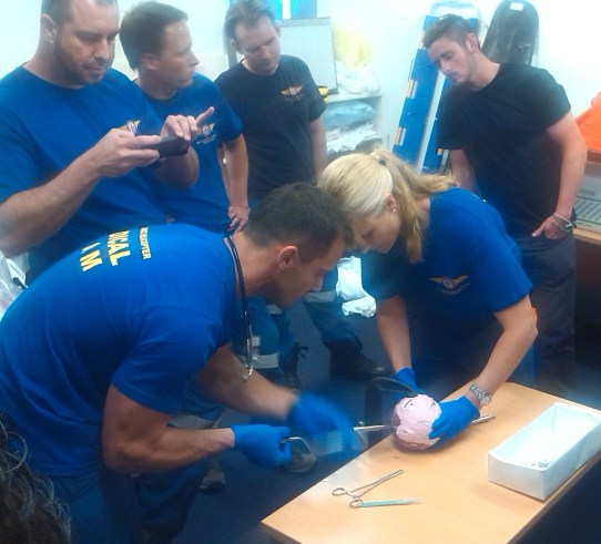 The team were tasked to a remote rural hospital, to retrieve a patient who had sustained a skull fracture with underlying extradural haemorrhage following an assault. Unknown to the retrieval team, he had also been stabbed in the back with a developing pneumothorax and was becoming increasingly hypoxic as the scenario progressed.