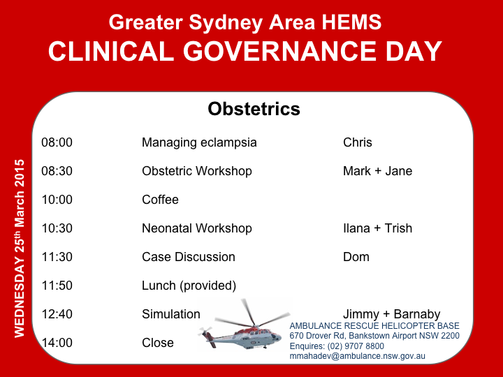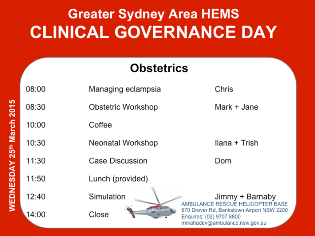 There are two exciting workshops planned for the day, covering management of obstetric emergencies and revising our basic neonatal resuscitation.