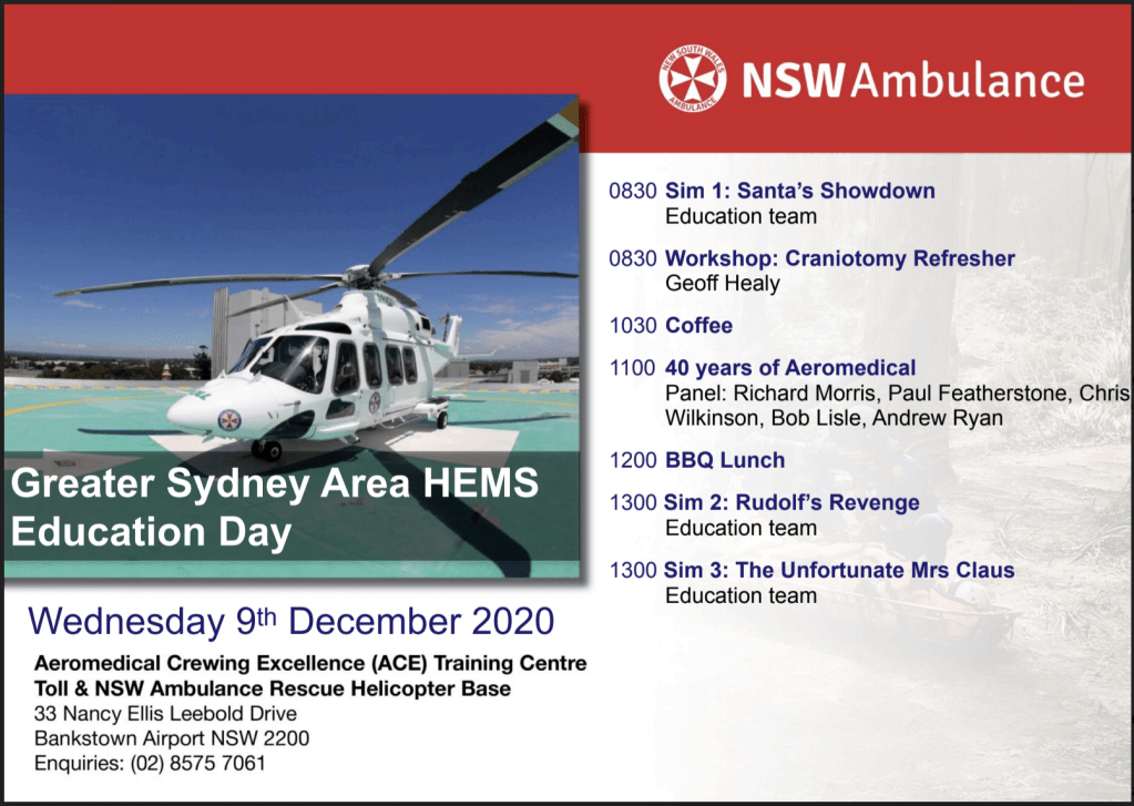 Our next Education Day will be held on 9th December at the Aeromedical Crewing Excellence Centre and also by video-conference.