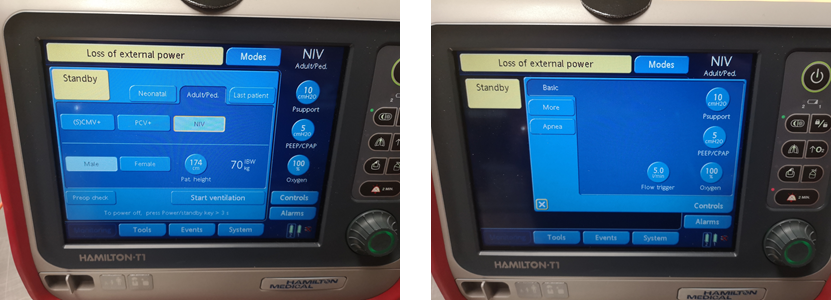 Oxygen consumption: In the system tab, the Hamilton T1 will tell you your current oxygen consumption in l/min. This particularly useful in long transfers, patients with high oxygen consumption or patients on NIV where you may need to plan ahead with how much is available or if you need to restock en route.