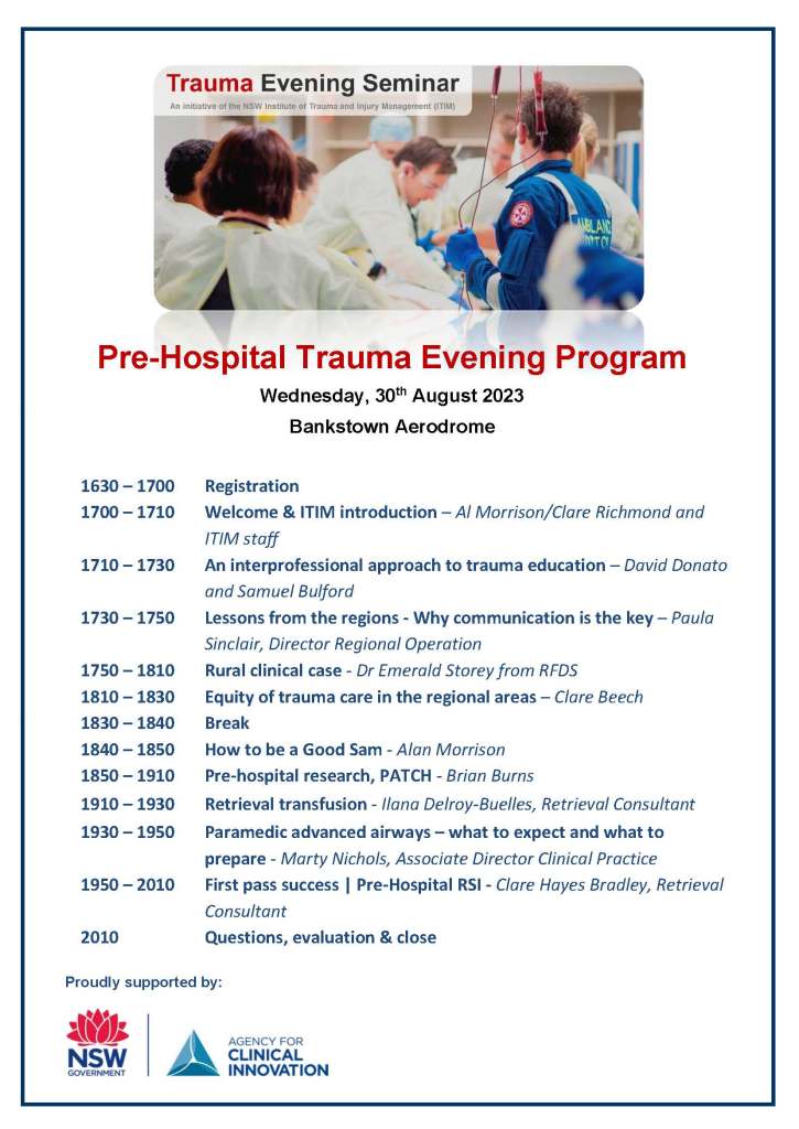The NSW Institute of Trauma and Injury Management proudly presents the Pre-Hospital Trauma Evening in collaboration with the NSW Ambulance Service.