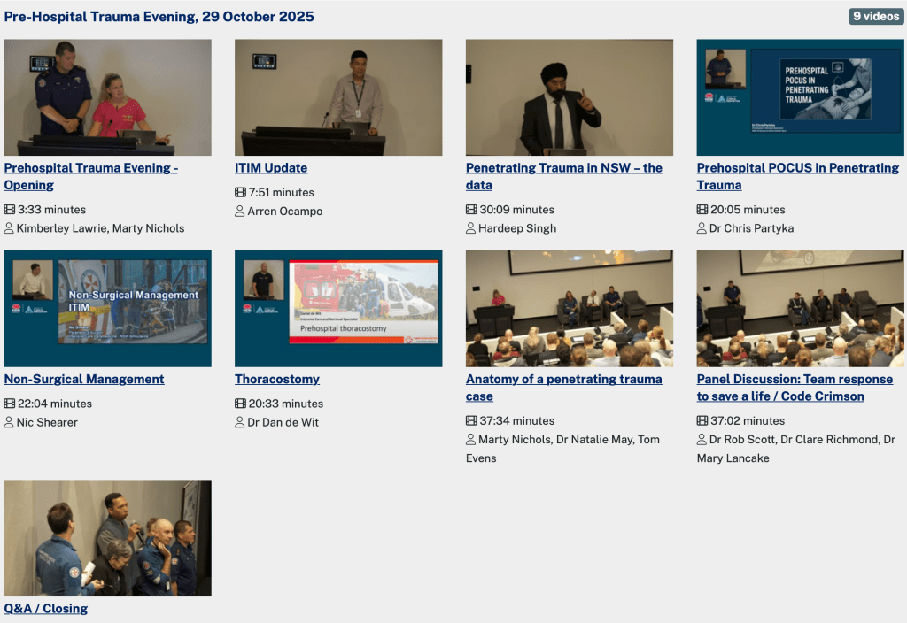 The videos of these talks are available now through the ITIM website – click here to be taken to the video page. You will need to select Pre-Hospital Trauma Evening, 29 October 2025 to see the recorded videos.