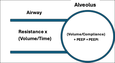 Putting this together, Airway Pressure= Resistance x (Volume/Time) + (Volume/Compliance) + PEEP + PEEPi
