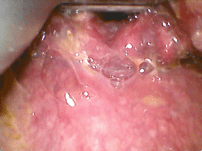 In the same patient the blue bougie had much less effect and the view of the larynx was maintained, allowing intubation.