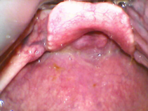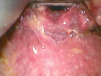 In the same patient the blue bougie had much less effect and the view of the larynx was maintained, allowing intubation.