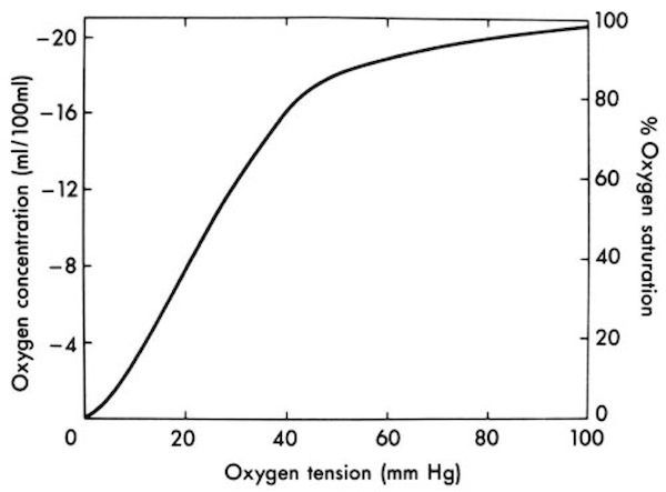 This is how the pO2 and SpO2 are related (subject to many assumptions!)